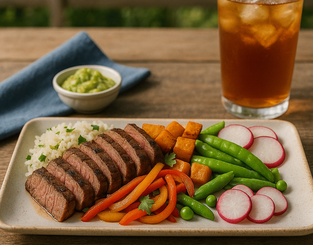 This steak fajita bowl is a quick and healthy 20-minute meal featuring tender lean steak, sautéed bell peppers, onions, and fresh toppings served over cilantro-lime rice. A protein-packed, flavorful option for clean eating, meal prep, and satisfying weeknight dinners.