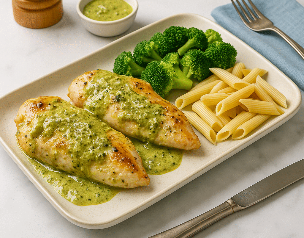 Juicy seared chicken breasts simmered in a velvety pesto cream sauce—simple, fresh, and ready in minutes. Perfect for busy weeknights, meal prep, or pairing with pasta, veggies, or grains.
