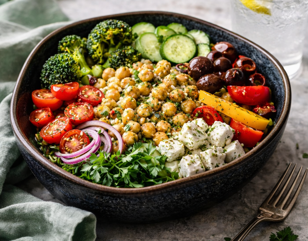 • Low sodium: Rinse chickpeas thoroughly and reduce olives.